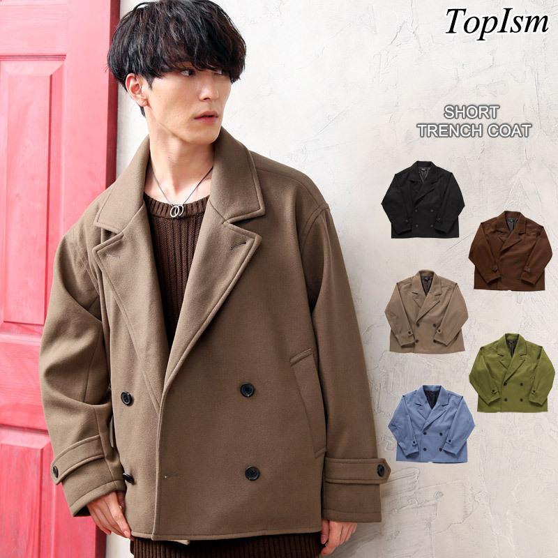 メンズトレンチコート ショートトレンチコート オーバーサイズ ビッグシルエット ワイドシルエット ドロップショルダー ウール調素材 無地 Jkt 155 Topism Topism トップイズム メンズ通販 通販 Yahoo ショッピング