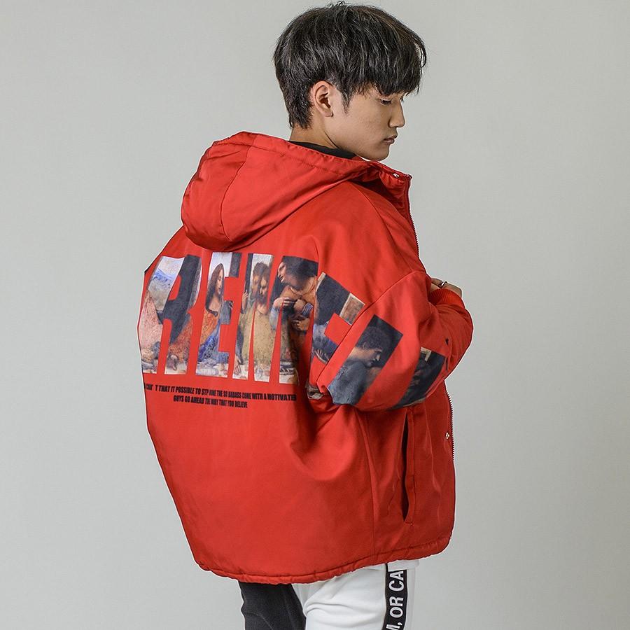 アート柄文字中綿ビッグフードブルゾン ダウンジャケット メンズ ビッグシルエット 中綿ジャケット ホワイト レッド ブラック 白 赤 黒 M L Xl Re730 Be メンズジャケット バッグ 鞄 のhk 通販 Yahoo ショッピング