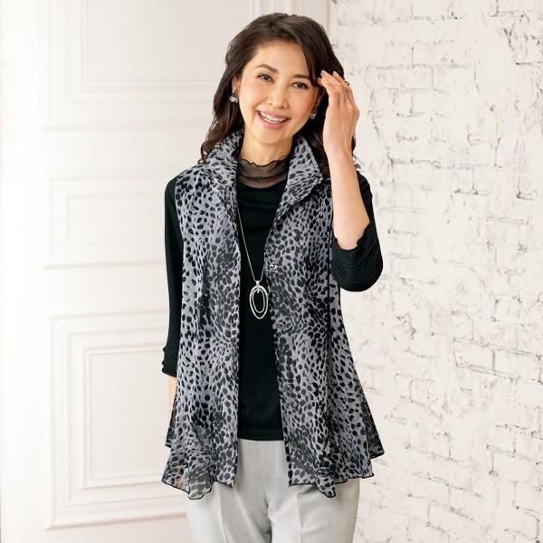 ベスト トップス レディース 春夏 パワーネットプリントフレアーベスト 50代 60代 70代 80代 ミセスファッション シニアファッション 服 京都通販 ミセスのファッション館 通販 Yahoo ショッピング